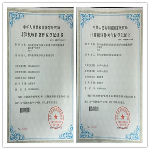 經(jīng)中華人民共和國國家版權局考證,根據(jù)《中華人民共和國計算機軟件保護條例》和《計算機軟件著作權登記辦法》的規(guī)定,四川省安普瑞自動化設備有限公司,被認定為軟件——“帶式輸送機數(shù)據(jù)采集平臺V1.0”和“CNG數(shù)據(jù)采集平臺軟件V1.0”的法定著作權人,并于2016年2月03日和1月28日被正式授予《中華人民共和國國家版權局計算機軟件著作權登記證書》,登記號為2016SR026269和2016SR020541。其版權將得到“中國版權保護中心”的有效保護。