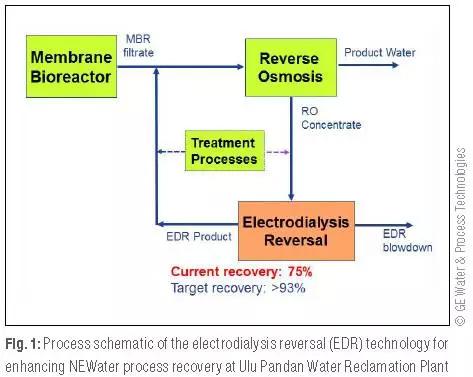另外,為了研究膜尺寸與膜污染對整個工藝的影響,新加坡國立大學(xué)的一個研究小組對此領(lǐng)域展開了小試試驗。這些試驗包括RO、EDR膜性能測試、TOC去除工藝測試(包括高級氧化與活性炭吸附工藝的結(jié)合)。該研究小組還得到了GE在水質(zhì)分析和膜性能研究方面的技術(shù)支持。這個小試試驗旨在通過對膜的研究來優(yōu)化工藝,以達(dá)到最佳出水水質(zhì),并解決開展工程化應(yīng)用前的一切問題。