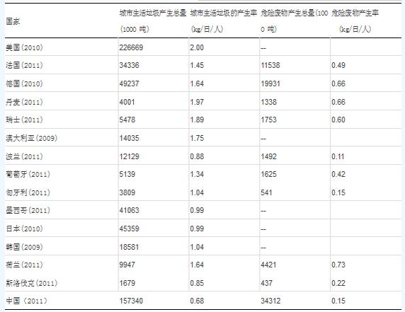 表2 廢棄物在OECD國(guó)家及中國(guó)的產(chǎn)生情況